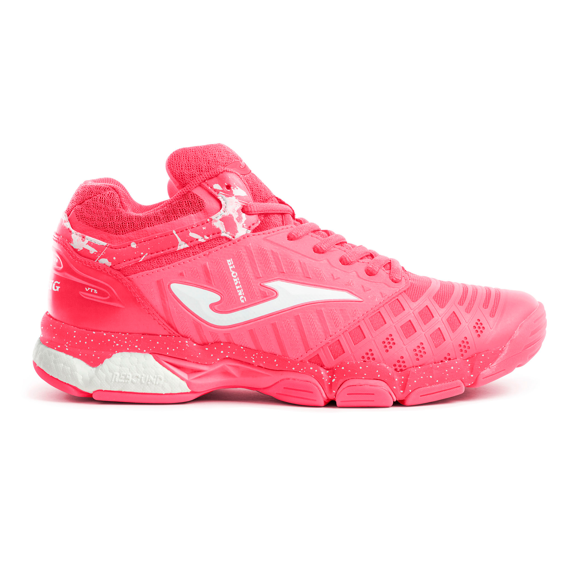 Женские волейбольные кроссовки среднего профиля. Верхняя часть выполнена из дышащего текстиля со вставками из синтетического материала для защиты, устойчивости и оптимальной посадки стопы. В носочной области материла более плотный, чем в боковой. Пятка и носок усилены для защиты. Верхняя часть и язычок усилены пеноматериалом для защиты голеностопа и оптимизации посадки. Подошва изготовлена из материала Phylon с использованием технологии двойной амортизации FULL DUAL PULSOR. В верхней части более плотный материал для устойчивости, во нижней применена технология REACTIVE BALL – для амортизации. В центральной части находится вставка STABILIS, обеспечивающая стабильность и поддержку стопы для предотвращения травм голеностопа. Подошва изготовлена из износостойкой резины, на ней имеются точка поворота ROTATION для того, чтобы облегчить игроку резко менять направление движения. Линии FLEXO делают подошву гибкой, а движения стопы по время бега – естественными.