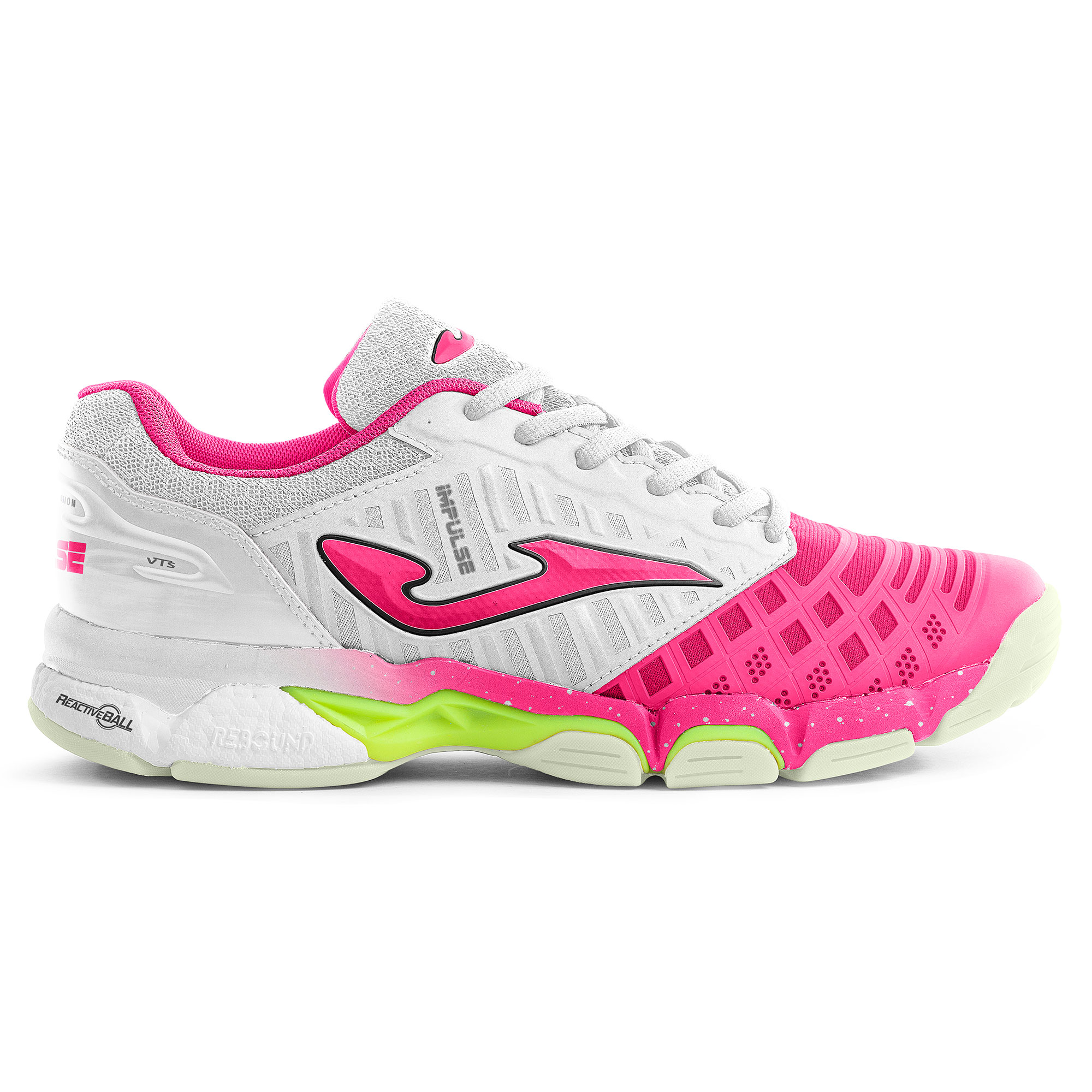 Женские волейбольные кроссовки, в которых можно также тренироваться и принимать участие в соревнованиях по гандболу, сквошу или бадминтону. Верхняя часть выполнена из текстильного материала, обеспечивающего доступ воздуха, и усилена вставками из синтетического материала(более плотными в носочной области и менее – по бокам), которые отвечают за устойчивость и оптимальную посадку стопы. Внутреннее уплотнение из пеноматериала в верхней части и язычке также способствует устойчивости стопы и предотвращает травмы голеностопа в результате резких неконтролируемых движений. Пятка и носок усилены для защиты. Промежуточная подошва изготовлена из двух слоев материала Phylon разной плотности (система FULL DUAL PULSOR). Первый имеет в высокие амортизационные свойства (технология REACTIVE BALL), второй – более плотный – отвечает за устойчивость. Имеется дополнительный жесткий элемент в подошве (технология STABILIS), помогающий избежать травм. Подошва изготовлена из износостойкой резины, на ней имеются точка поворота ROTATION для того, чтобы облегчить игроку резко менять направление движения. Линии FLEXO делают подошву гибкой, а движения стопы по время бега – естественными.