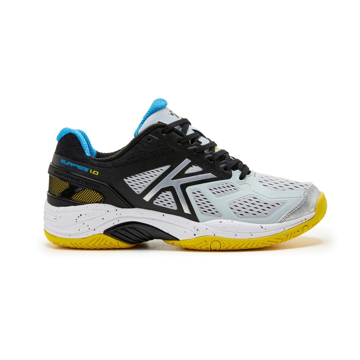 Кроссовки для игры в падел и теннис, легкие, устойчивые. Верх обуви представляет собой сочетание двух материалов - сетчатой ткани и накладок из синтетического материала, прикрепленных с применением бесшовной технологии, что снижает вес. Носок усилен дополнительной накладкой из искусственной кожи, для защиты и прочности. Межподошва из материала Phylon обеспечивает амортизацию, деталь из ПВХ в средней части стопы обеспечивает устойчивость при движениях. Подошва из износостойкой резины отвечает за хорошее сцепление с кортом.